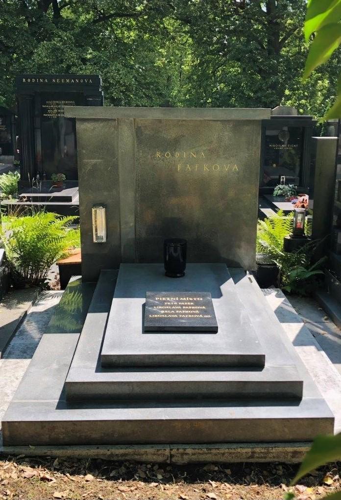 | V této hrobce je pohřben Josef Fafek, bratr Petra Fafka, který byl za druhé světové války spolu se se svou manželkou Liboslavou a dcerami Liboslavou a Relou popraven nacisty za pomoc parašutistům výsadku Anthropoid. |