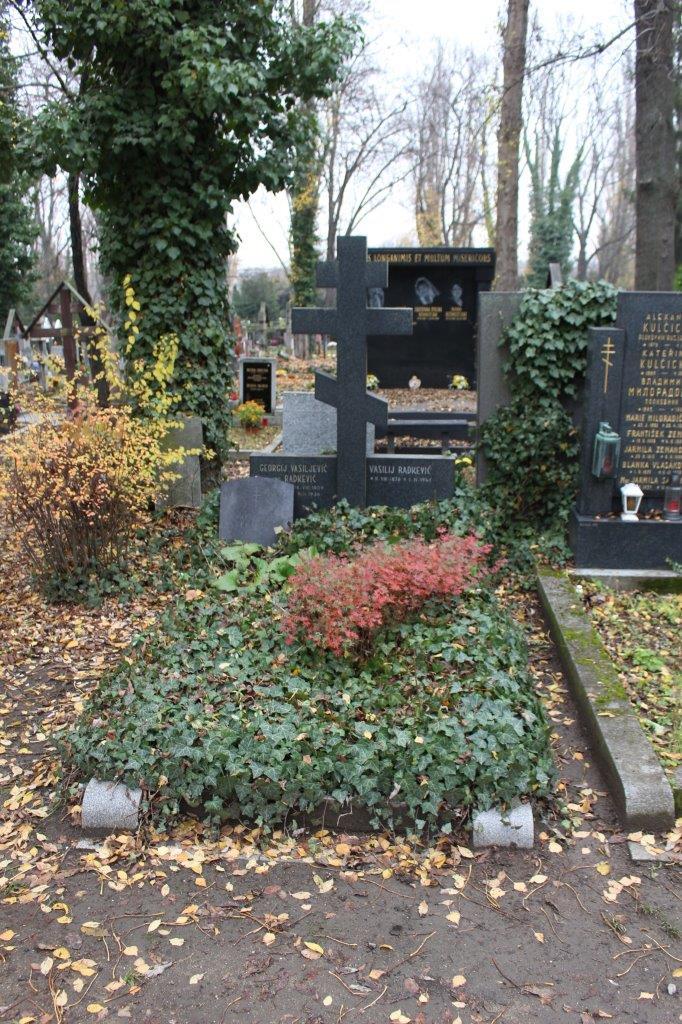 | V tomto hrobu jsou pohřbeni Ing. Georgij Vasilevič Radkevič (16. 8. 1909 – 9. 2. 1936), Vasilij Radkevič (11. 8. 1878 – 1. 4. 1947) a Markéta Radkevičová. |