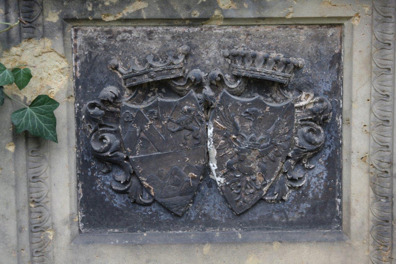 Hraběnka Julie Kolowrat Krakowská (10. 3. 1796 – 17. 9. 1885) se podle dochovaných záznamů roku 1814 provdala v Hrobech za podplukovníka svobodného pána Františka von Böhma. Pískovcový náhrobek nese rodové erby obou manželů.