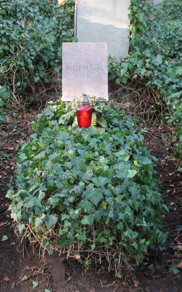 | V tomto hrobu odpočívají Antonín, Marienna a Aloisie Hašlerovi, rodiče a sestra písničkáře a herce Karla Hašlera (1879–1941). |