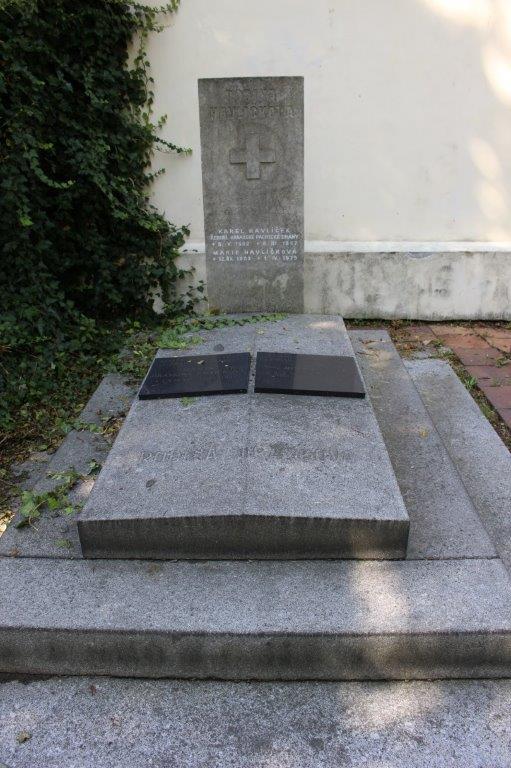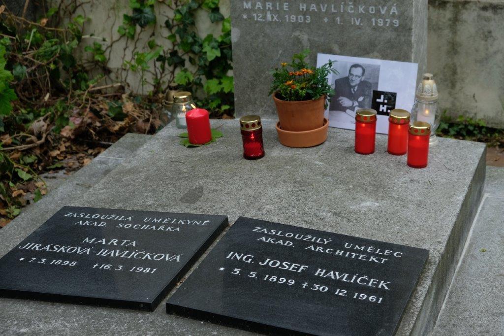 | Josef Havlíček (5. 5. 1899 – 30. 12. 1961) byl architekt – funkcionalista, výrazná osobnost Devětsilu. V tomto hrobu je pohřbena také jeho žena, sochařka Marta Jirásková Havlíčková (7. 3. 1898 – 6. 3. 1981). |