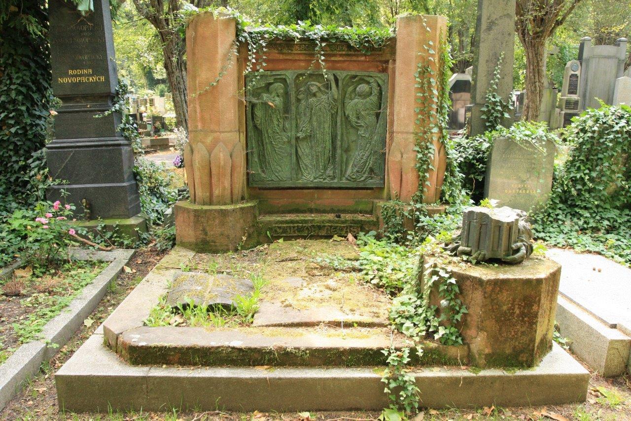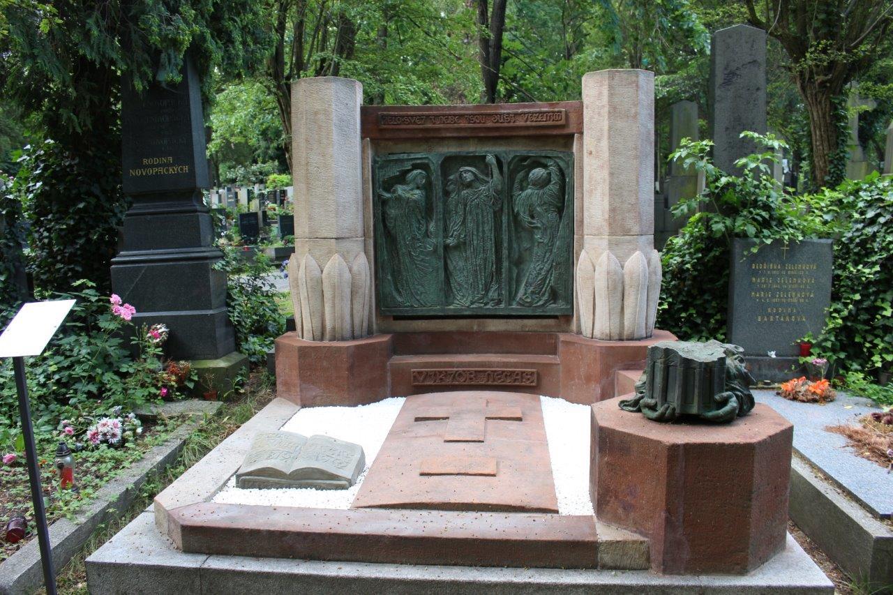 MUDr. Jaromír Nečas (1879–1962) byl městský lékař a lidumil. Na náhrobku je vytesáno také jméno jeho bratra Viktora, účetního, který zde byl pohřben už v roce 1908. Byli to švagři sochaře Františka Bílka, který vytvořil tento reliéf spolu s lucernou a vše zakomponoval do kompozičně dokonale vyváženého náhrobku z různobarevných pískovců.