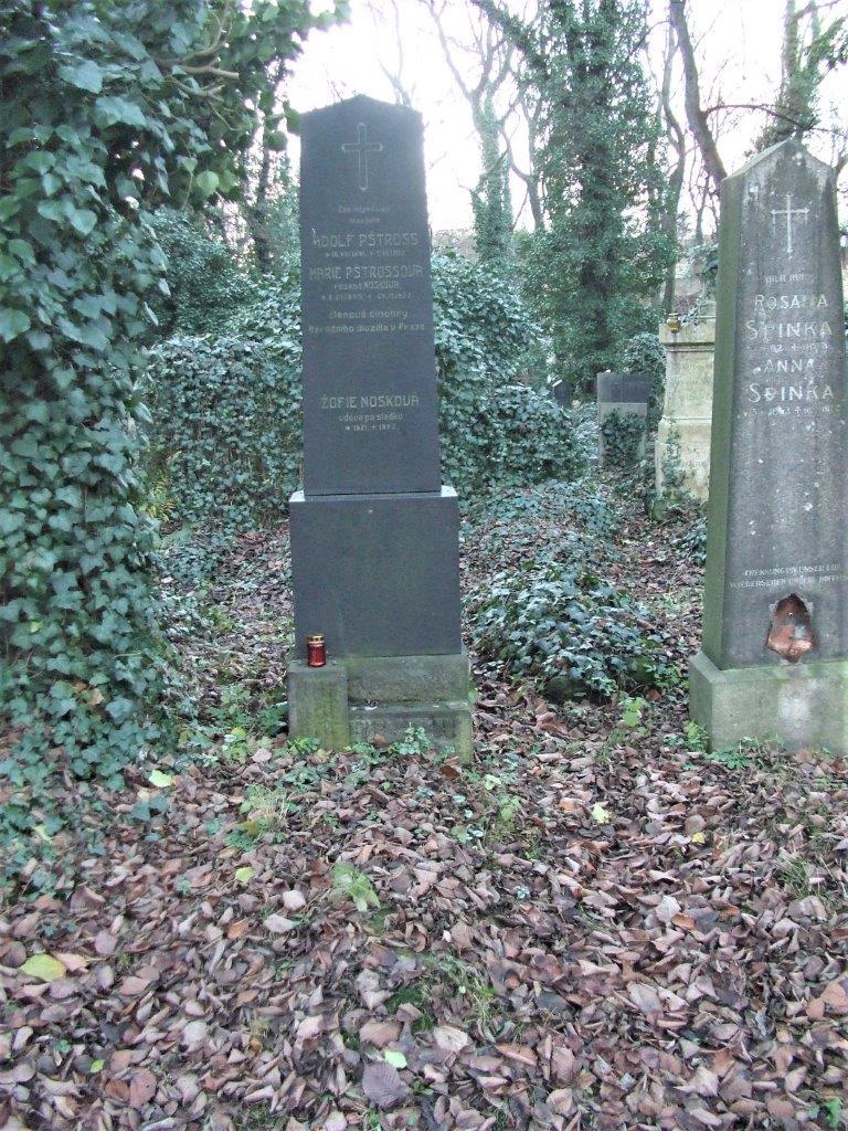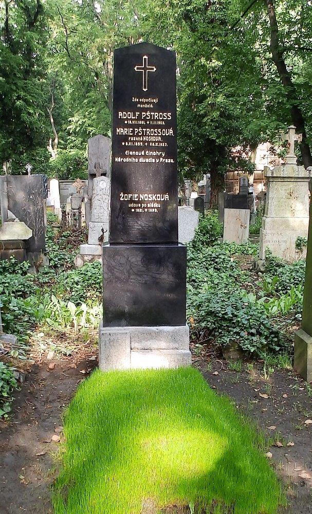 | V hrobu jsou pohřbeni herci a příslušníci takzvané Staré gardy Národního divadla, Adolf Pštross (1851 – 1903) a jeho žena Marie Pštrossová (1855 – 1927). |